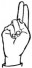 На ћирилици написано КОСТАДИН КОЖОВАЦ састоји се из 15 слова [?]. Исписано ћириличном једноручном азбуком за глувонеме: